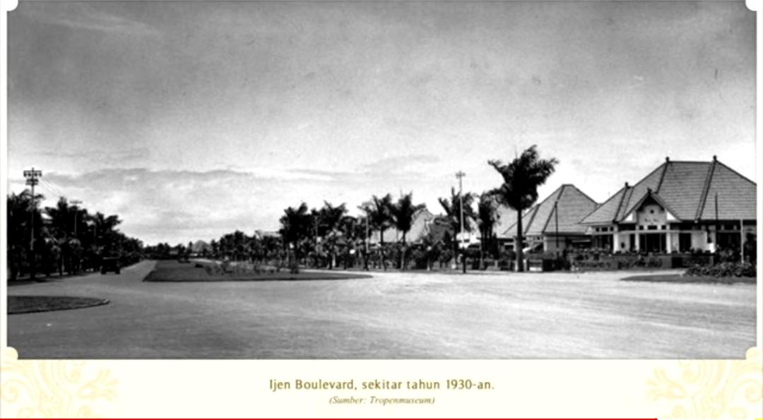 Area Jalan ljen, atau kawasan Idjen Boulevard di masa era tahun 1930-an yang cukup lengang. Kini, meski tak begitu banyak diubah dengan tetap mempertahankan suasana bangunan heritage, tapi banyak lalu lalang kendaraan yang memenuhi area tersebut.